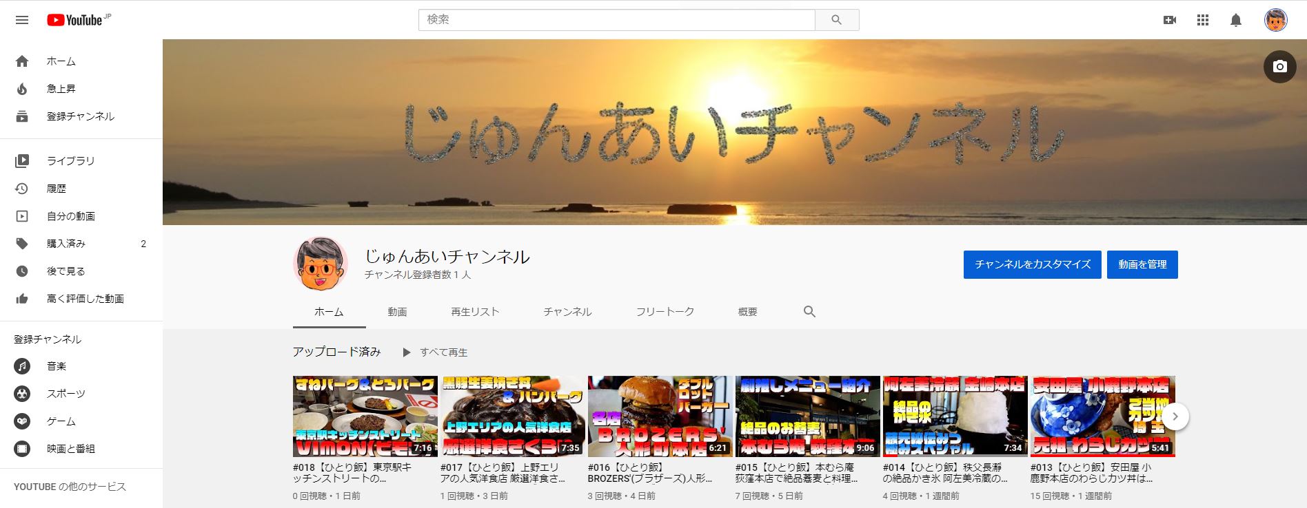YouTubeで「じゅんあいチャンネル@旅とグルメ」を運営しているじゅんです。 内容は旅先で食べたグルメを中心に旅情報を紹介しています。 残念ながら純愛ネタを綴るチャンネルではありません。 よろしくお願いいたします。
